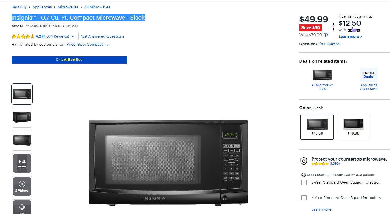 Insignia™ - 0.7 Cu. Ft. Compact Microwave - Black 9新 20刀 安娜堡可送货