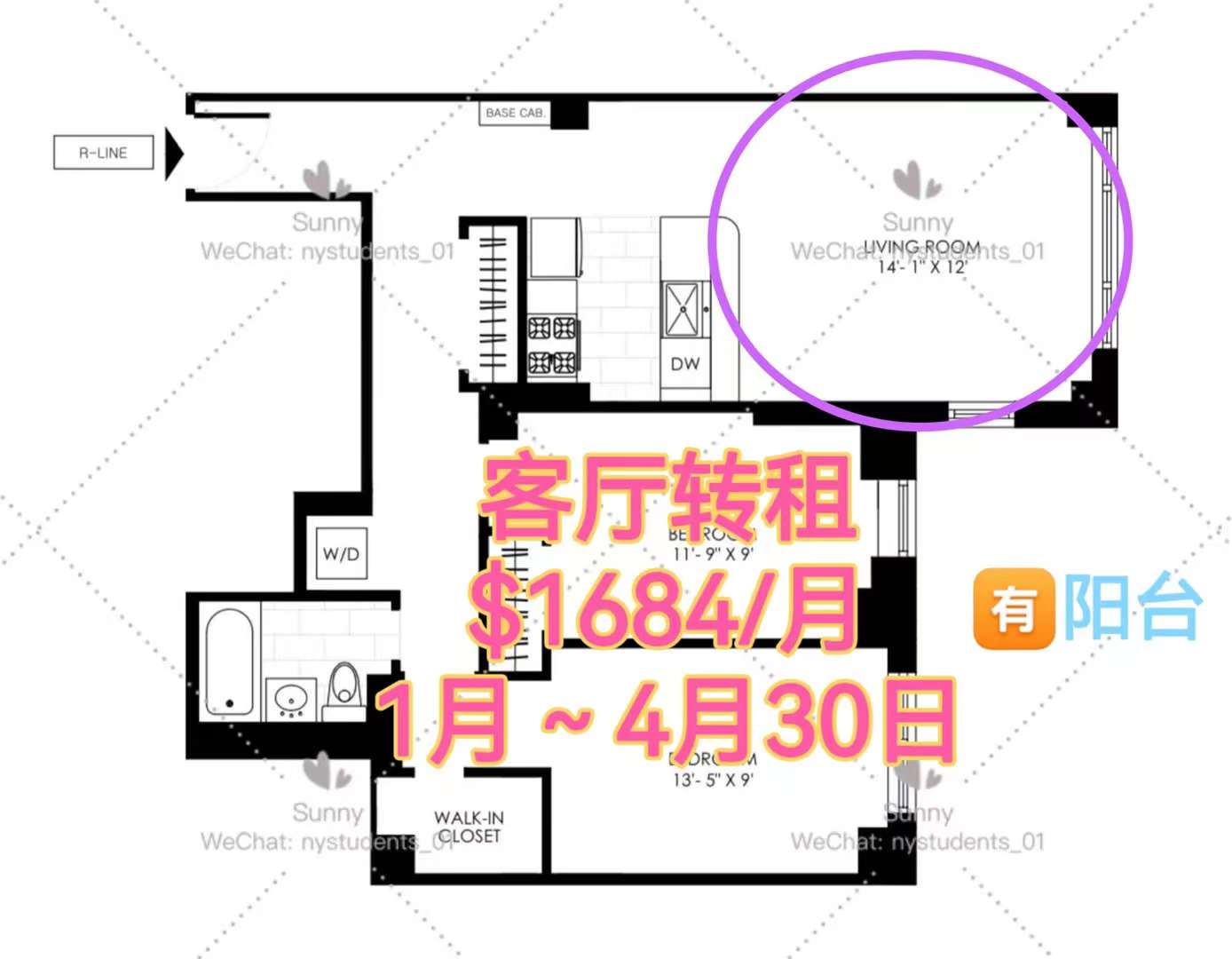 上西97街pwv784 2b1b客厅个人转租(限女生)