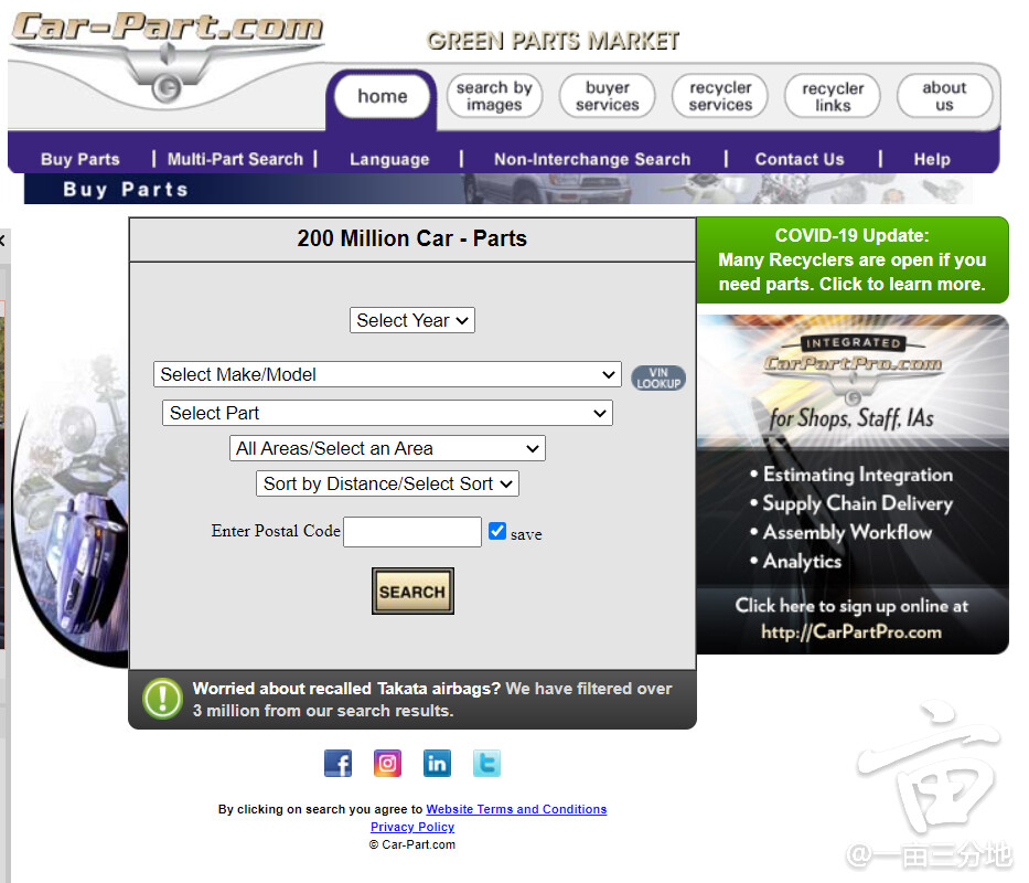输入自己的邮编,输入自己的车型与所需配件名称(这个网站产品分类非常精确,所以大家查询配件前一定要搞清楚自己的车型配置),能显示自己周围的各种拆车场资源。打电话或者他们的网站上下单,邮寄送货自取都可以交流。也可以议价哦~