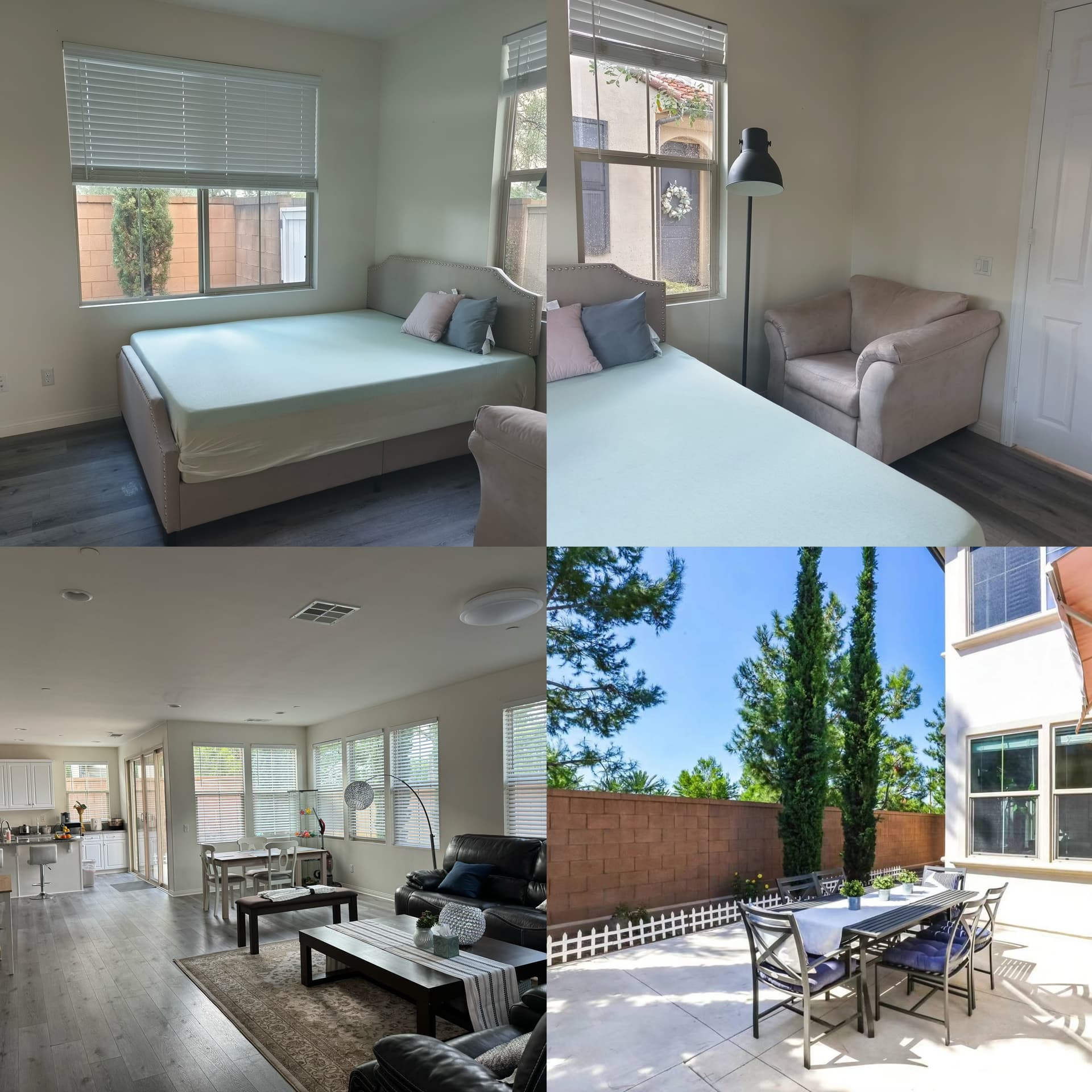 介绍: 尔湾有客房出租,客厅宽敞,封闭式院子。 位置在尔湾大公园,沙漠之花 包水电煤气及炊事用具,家具,高速上网,环境优雅安全。 短租租金40一天,长租租金月租金1000,租期灵活,即刻入住!!!