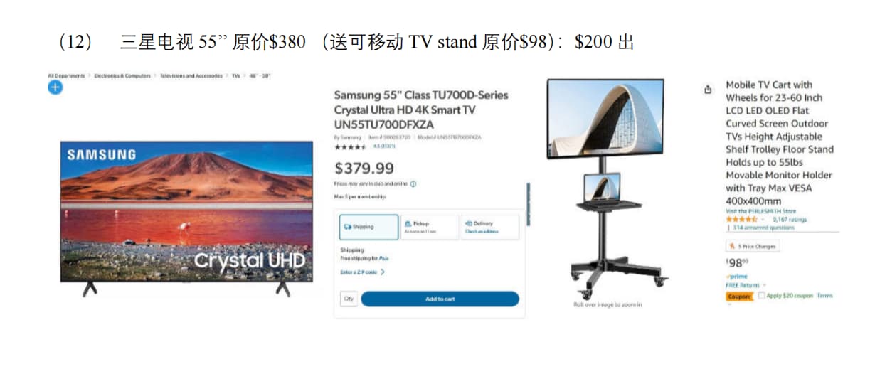 出三星电视 、超⼤曲⾯显示屏、⾼脚椅等
