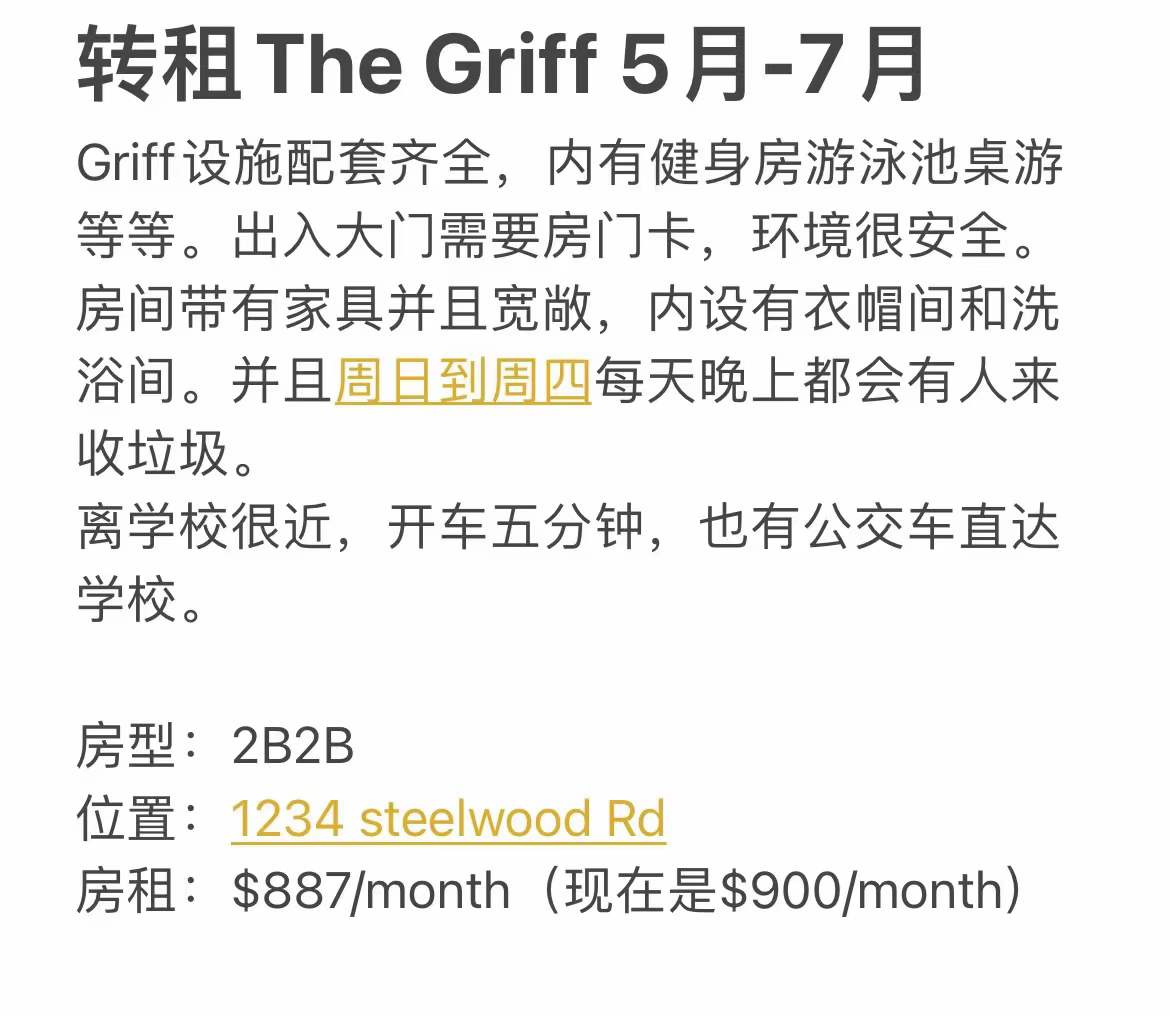 转租The Griff 2b2b 5月-7月