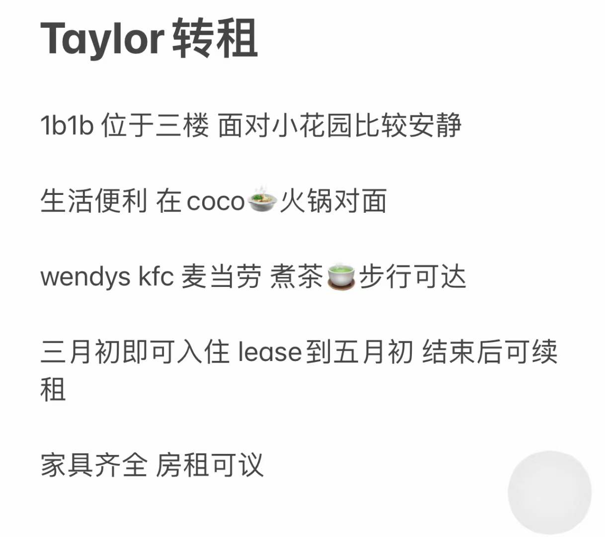 【转租】3月只用半个月房租