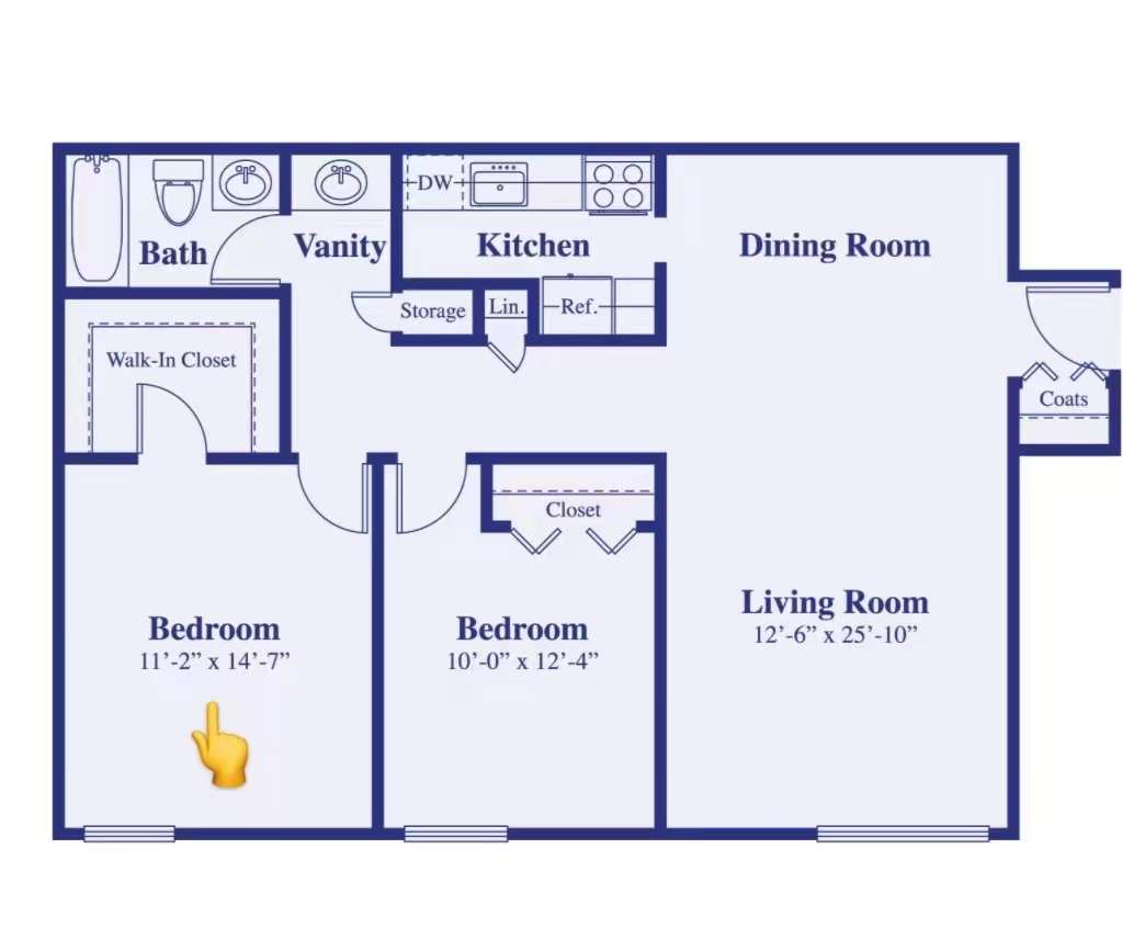 房型:2b1b中的主卧