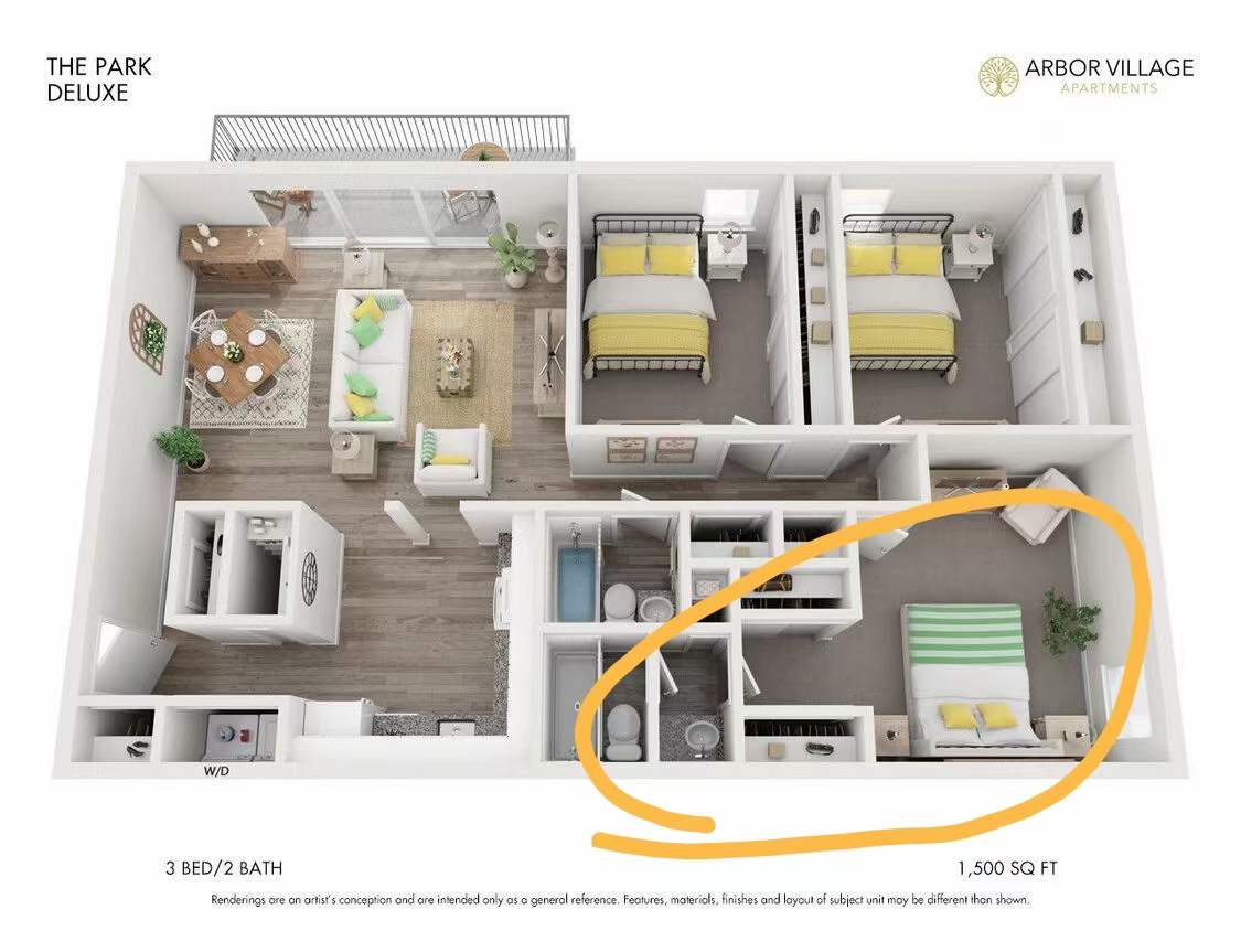 转租Arbor Village Apartment 3b2b 主卧(独卫) 只要$500+!