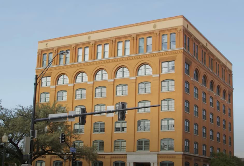 这个红砖七层建筑曾是德克萨斯州公立学校教科书中心,同时也是肯尼迪总统被刺杀的地方。
