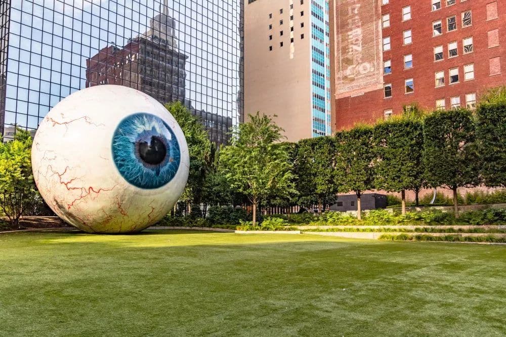达拉斯之眼位于当地 五星级酒店——Joule酒店的花园 中。巨大的眼球孤零零地立在草地上,看上去充满了 魔幻现实主义 。下次来达拉斯,别忘了和它来张美美的自拍哦!