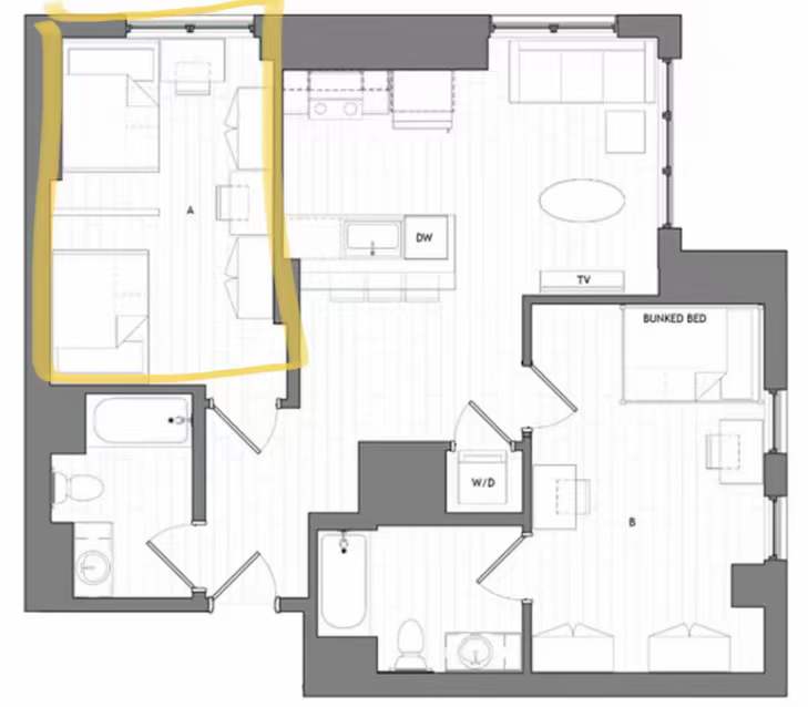 Furnished,家具全新,有洗衣机,独立厨房、客厅,可以直接拎包入住