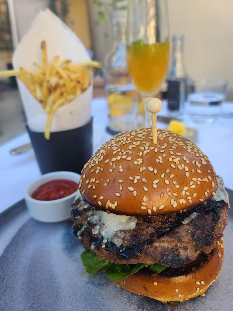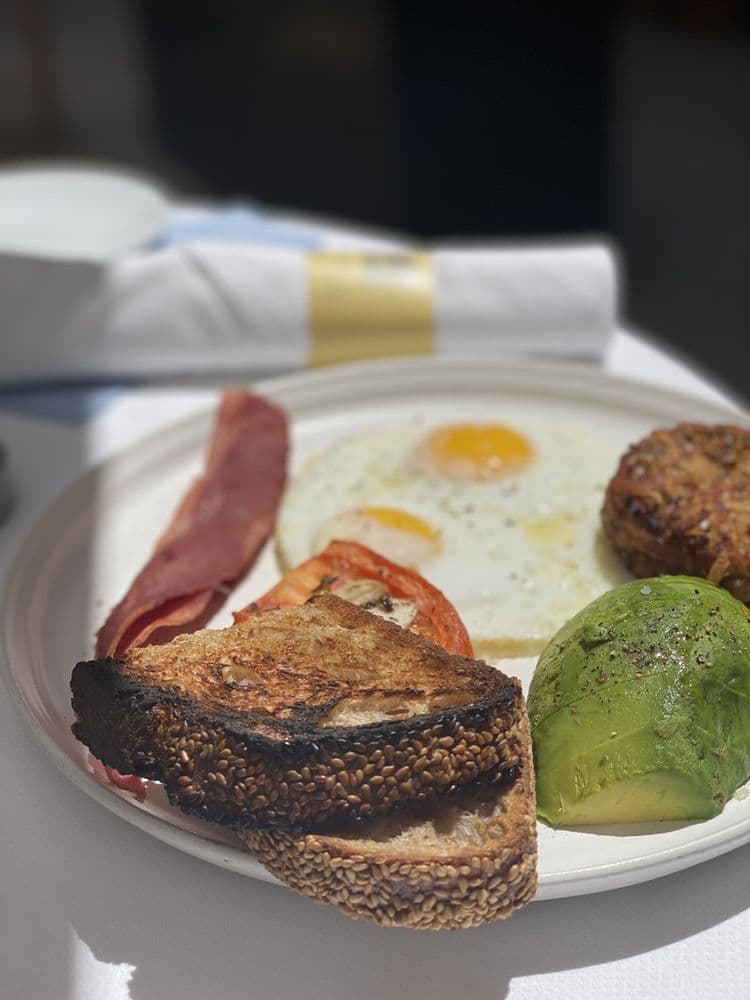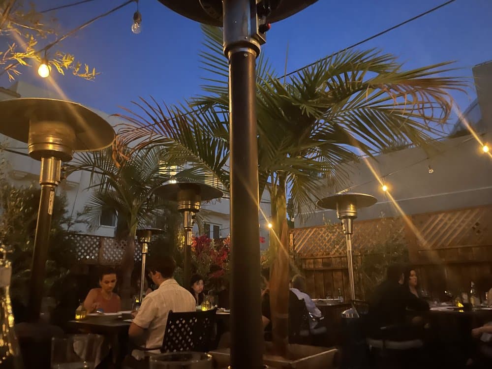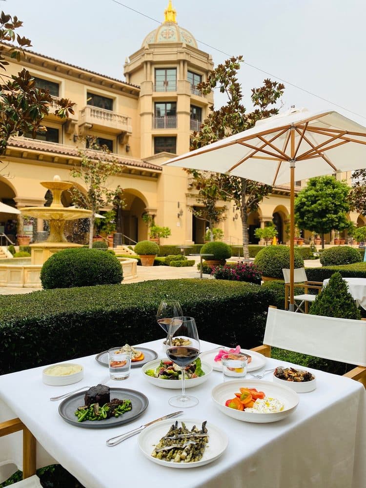 氛围绝绝子,而且它都是室外的seating,中间有庭院一样的草坪还有喷泉,因为快到圣诞,现在还有很多圣诞的装扮。坐在室外也不会冷,他们都heater,反而很舒服,可以一边欣赏着风景一边用餐。我很喜欢他们的vibe,而且还可以轻松出片口,我和朋友都超级喜欢他们家的白伞。他们家用餐的人还蛮多的,一般是外国人居多,而且大家都超精致,即使老爷爷老奶奶都打扮的很时髦,大概是因为这是beverlyhills~他们家有breakfast/lunch/brunch/dinner,但brunch只有周末才有哦,要提前在opentable预定就可以!