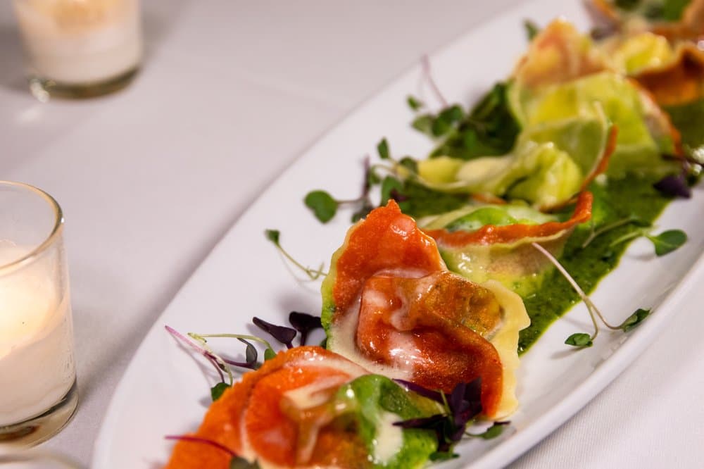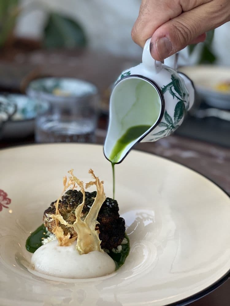 不管是在屋子里还是花园露台中好像处处可以还原无数爱情电影中优雅、古典的经典桥段。每一道菜品精致而且带有温度,美食柔和的配色摆盘和餐厅浪漫的基调柔和深沉的散发出温馨浪漫的气息。