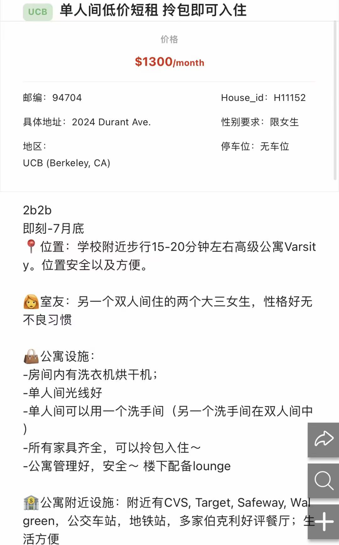 单人间低价短租 拎包入住