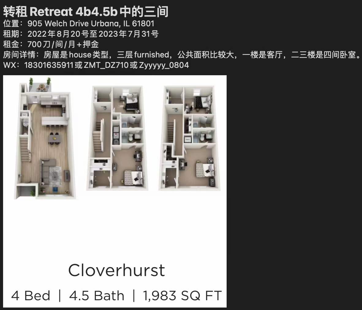 转租Retreat 4b4.5b 中三间