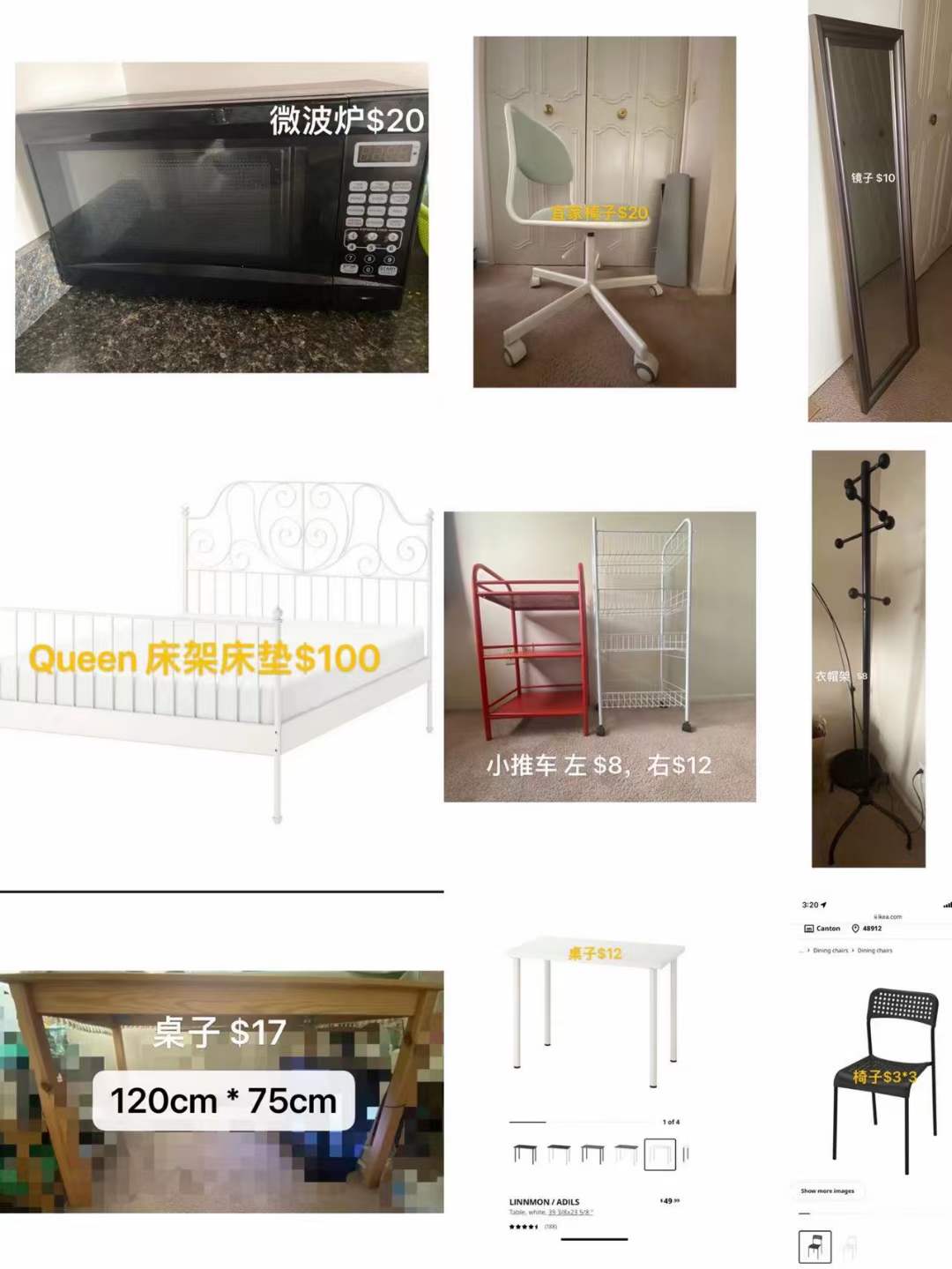 出微波炉、小推车、床架床垫等