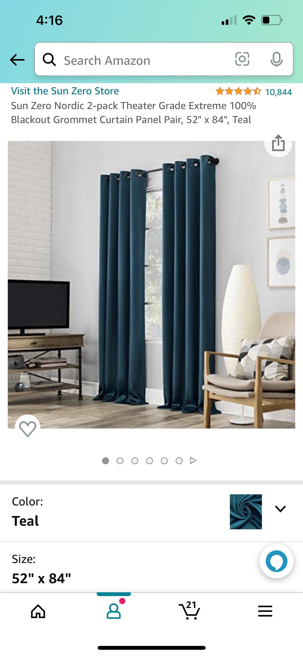 Sun Zero Nordic 2-pack Theater Grade Extreme 100% Blackout Grommet Curtain Panel Pair, 52" x 84", Teal