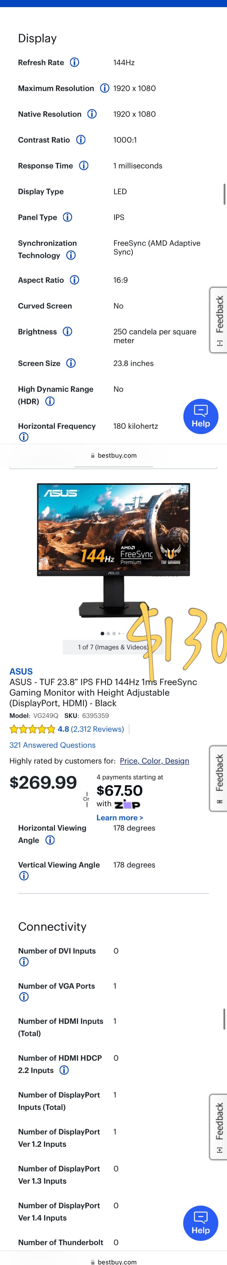 出ASUS TUF电竞显示屏,无刮痕,买就送一套全新的电竞鼠标键盘鼠标垫,可小刀