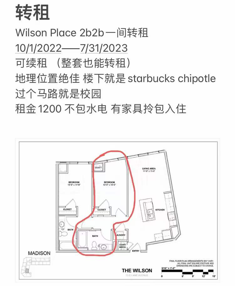 转租Wilson Place 2b2b一间