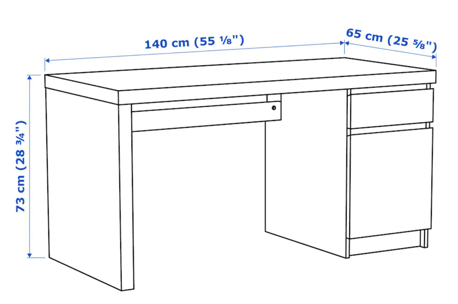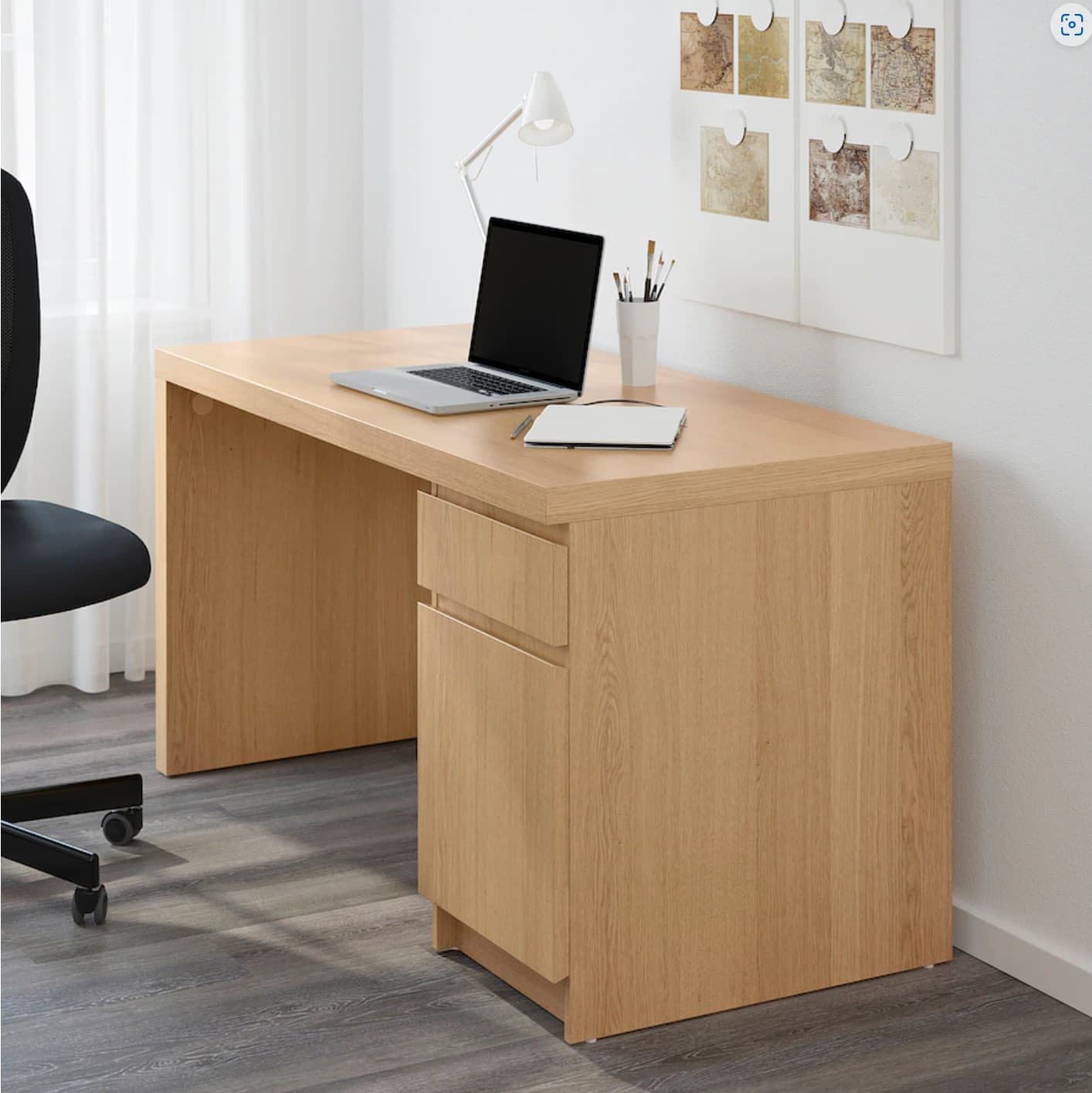 书桌原木色,140cm x 65cm,大书桌用起来很舒服。MALM Desk, oak veneer, 551/8x255/8" - IKEA 3-drawer chest $25