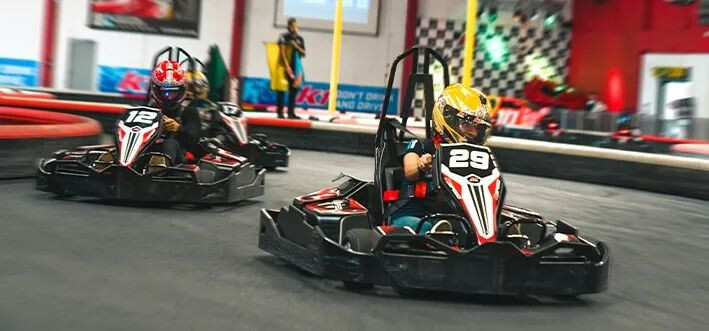 这是一个室内赛车中心,有适合所有年龄和技能水平的电动卡丁车,还有食物提供。必须身高48英寸或以上才能驾驶。
