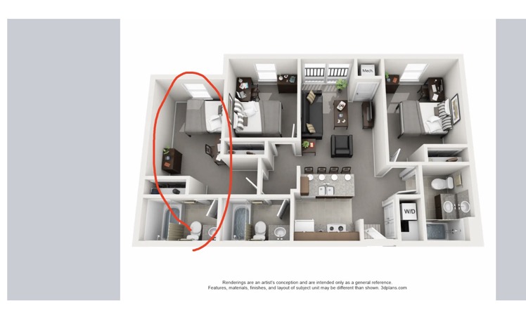 北校:courtyard apartment 1760 3b3b中的一间,房间里带卫生间