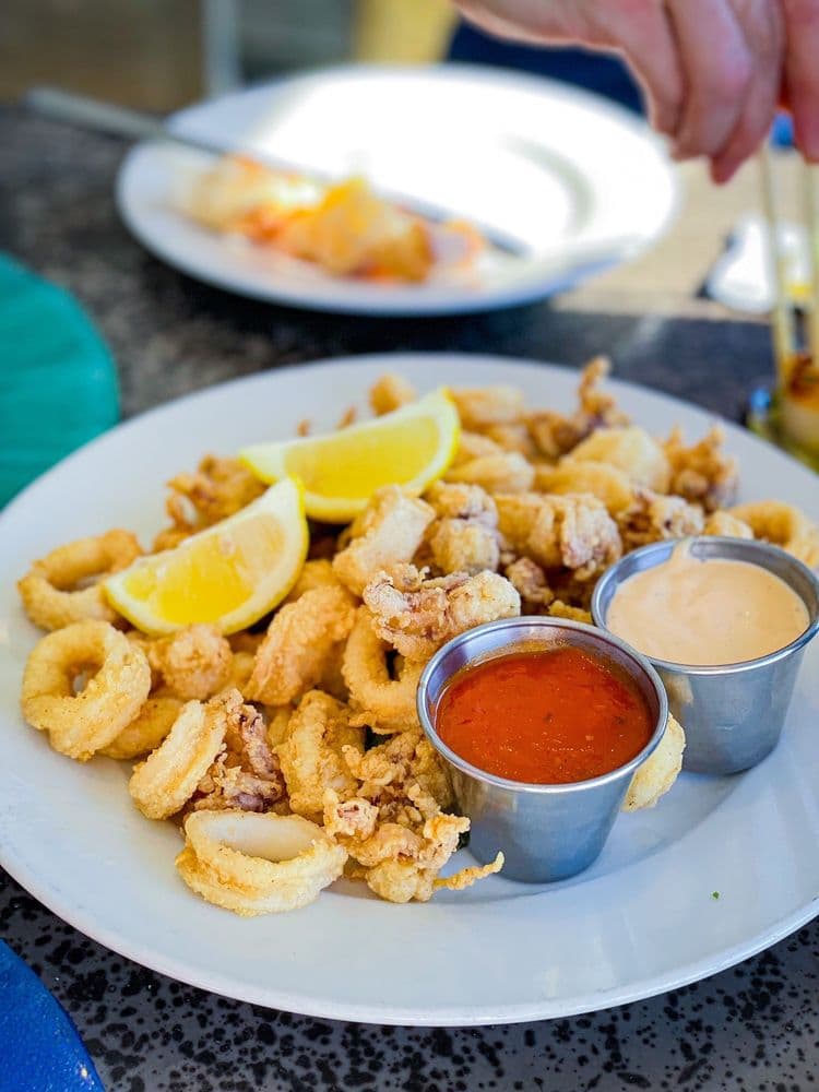 午饭推荐:Chispy coconut shrimp, black bean nachos,晚上可在barefoot bar喝小酒吹海风。