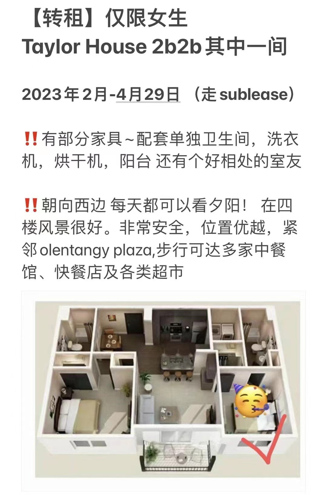 转租 Taylor house 2b2b其中一间 仅限女生