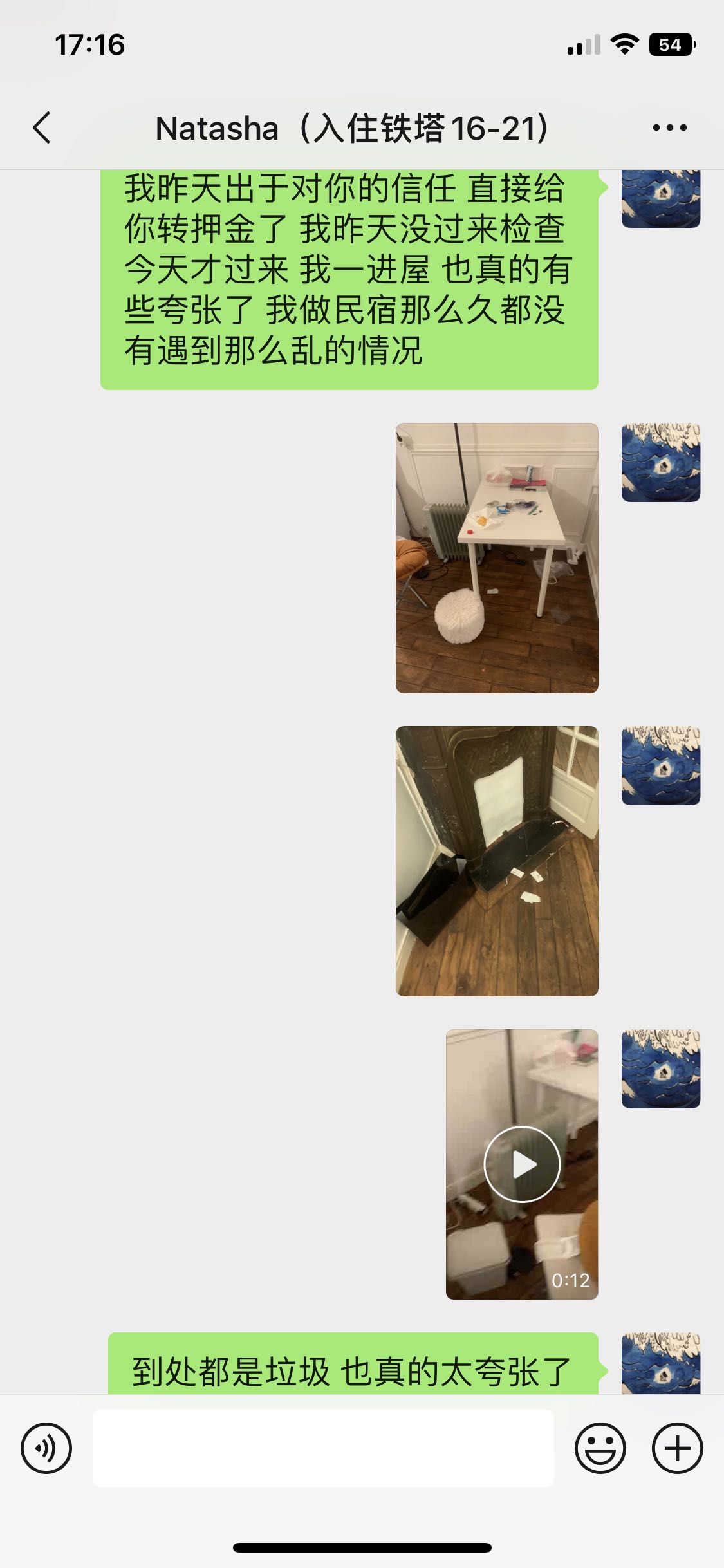 我是在巴黎做民宿的。我把民宿短租五天给了这个女的 12月