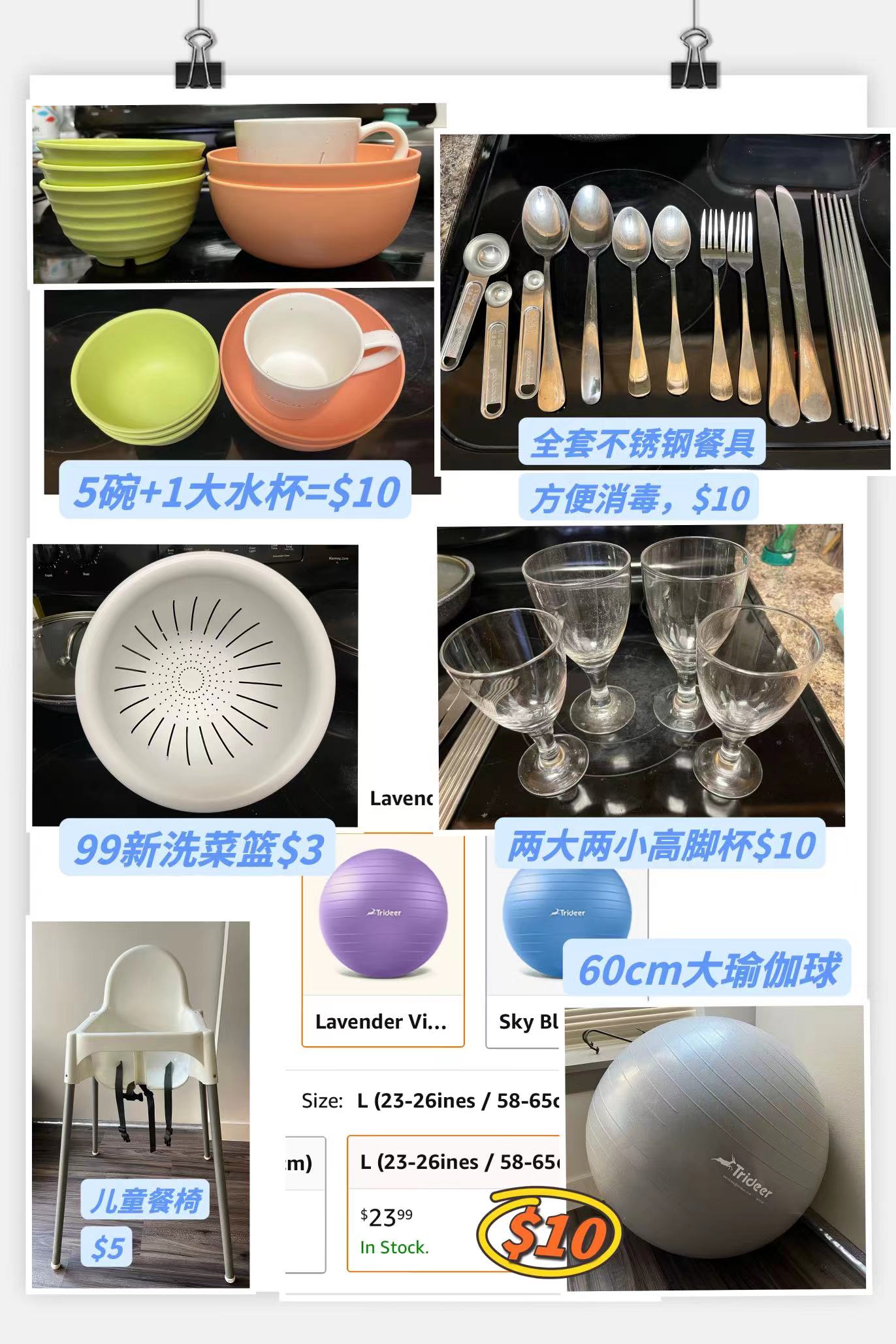 出5碗+1大水杯、新洗菜篮、高脚杯等