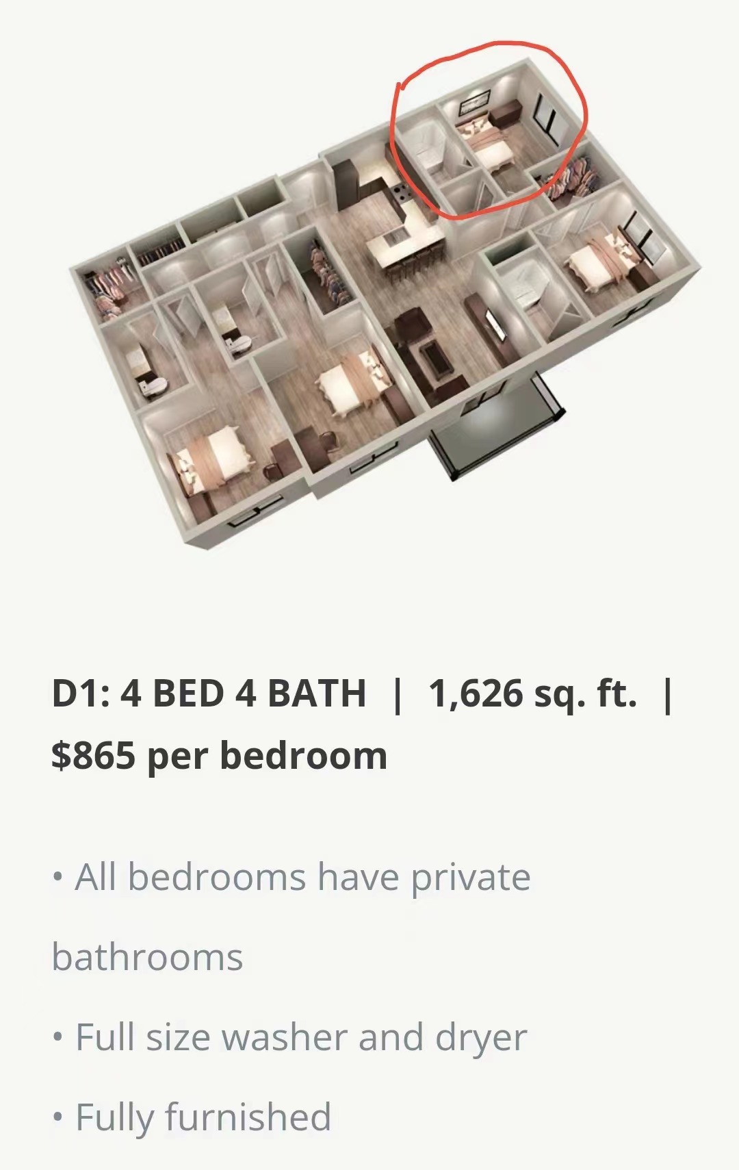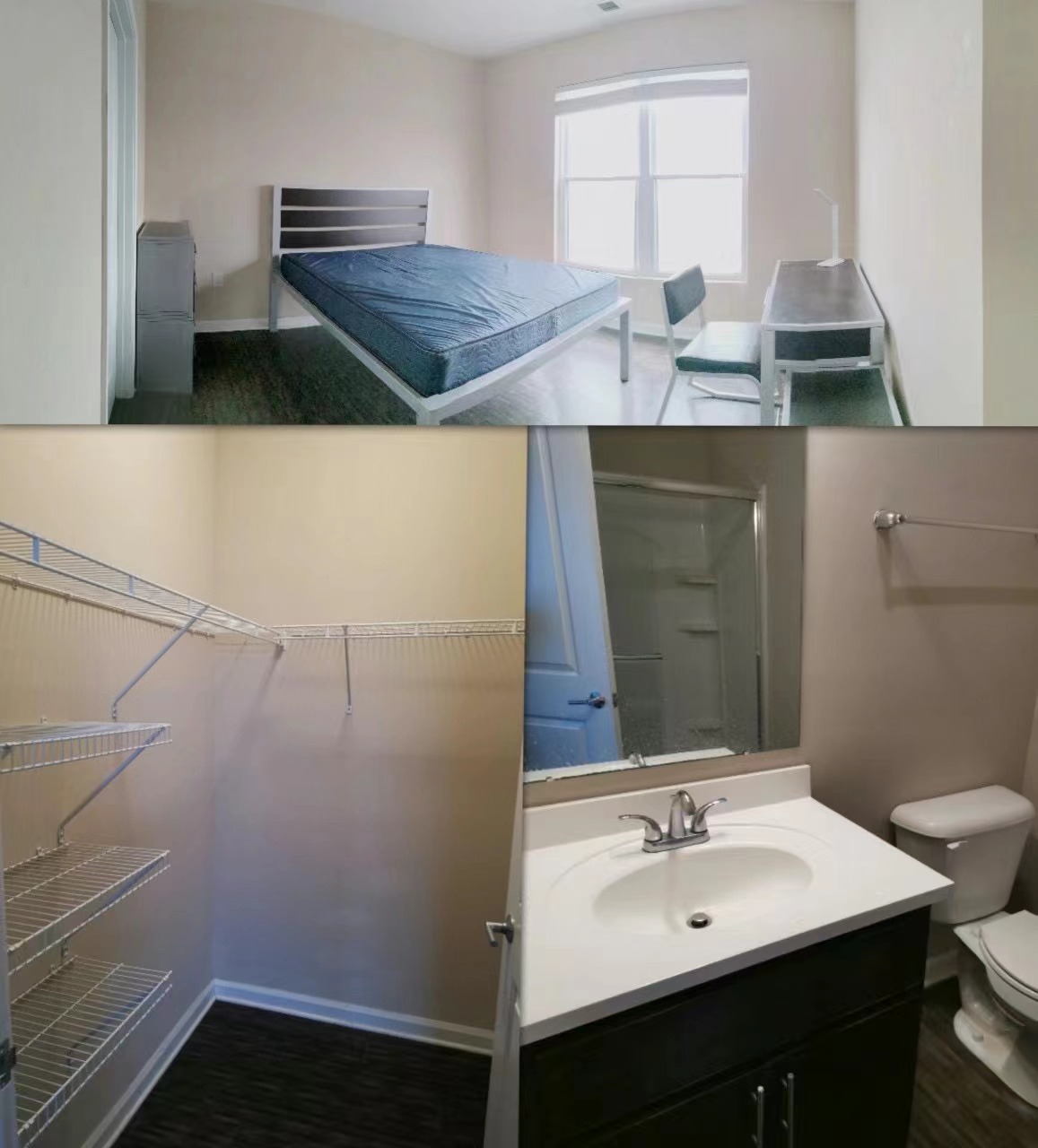 房间: 4b4b其中一间 (含独立卫浴、衣帽间、各种家具 厨具,拎包即可入住:全楼门禁,有游泳池 健身房自习室,周围环境清净安全)