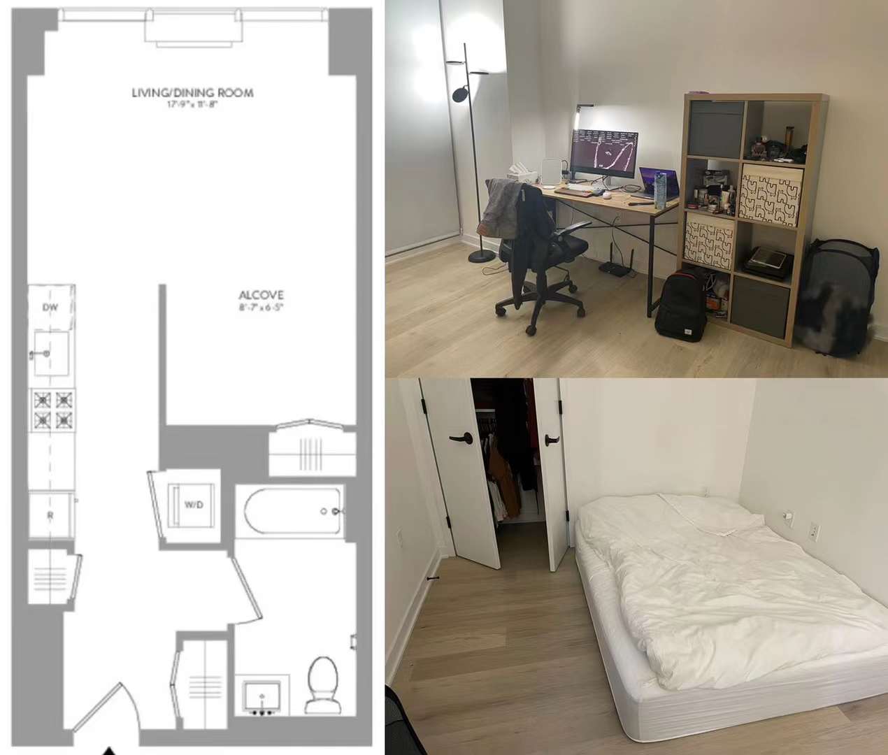 【租房】Hendrix高层studio转租 两岁豪楼30+层朝南alcove studio,可以远眺自由女神像 家具全送,拎包入住,有室内洗烘 楼下grove st地铁站,两站上岛。15分钟NYU,20分钟中城,45分钟哥大 24小时doorman,学习室,恒温泳池,健身房,娱乐室桌球德扑一应俱全 个人转租无中介费,$3300/月,租期3-9月