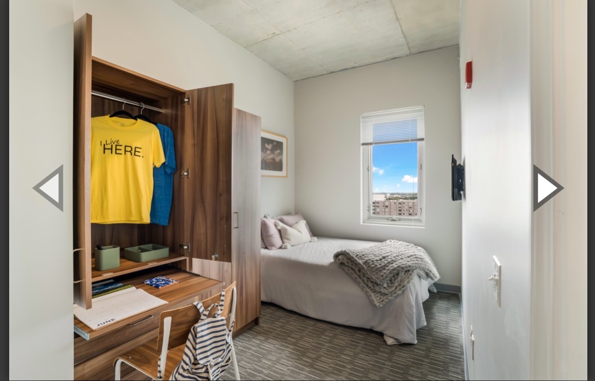 【公寓设施】房间很大有独立卫浴。内置洗衣机、烘干机、洗碗机、烤箱、微波炉、冰箱、电视等,有整套厨具,出入有门禁,公寓有健身房、游泳池、自习室、电脑室、打印机等。