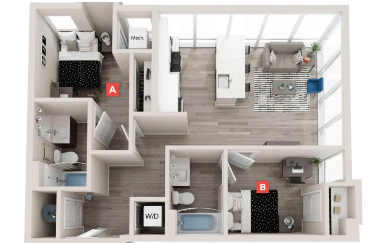 公寓设施:公寓内有健身房,自习室,clubroom,桌球,露天泳池,fireplace,spa等等…