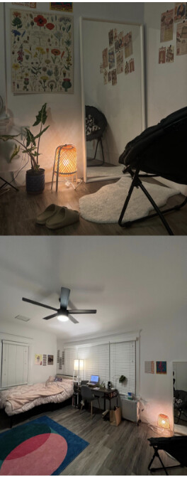 【设施】Private room带独立卫生间采光特别好 两面大窗 房间都在二层景观好全套家具 (本身包括书桌椅子床,自己添了一些床头架、转角桌、衣架等可以便宜出)室内洗衣机烘干机十每周公共区域清洁服务House有小院子院子屋子有双层密码锁有车子可街趴也可买院子里的停车位