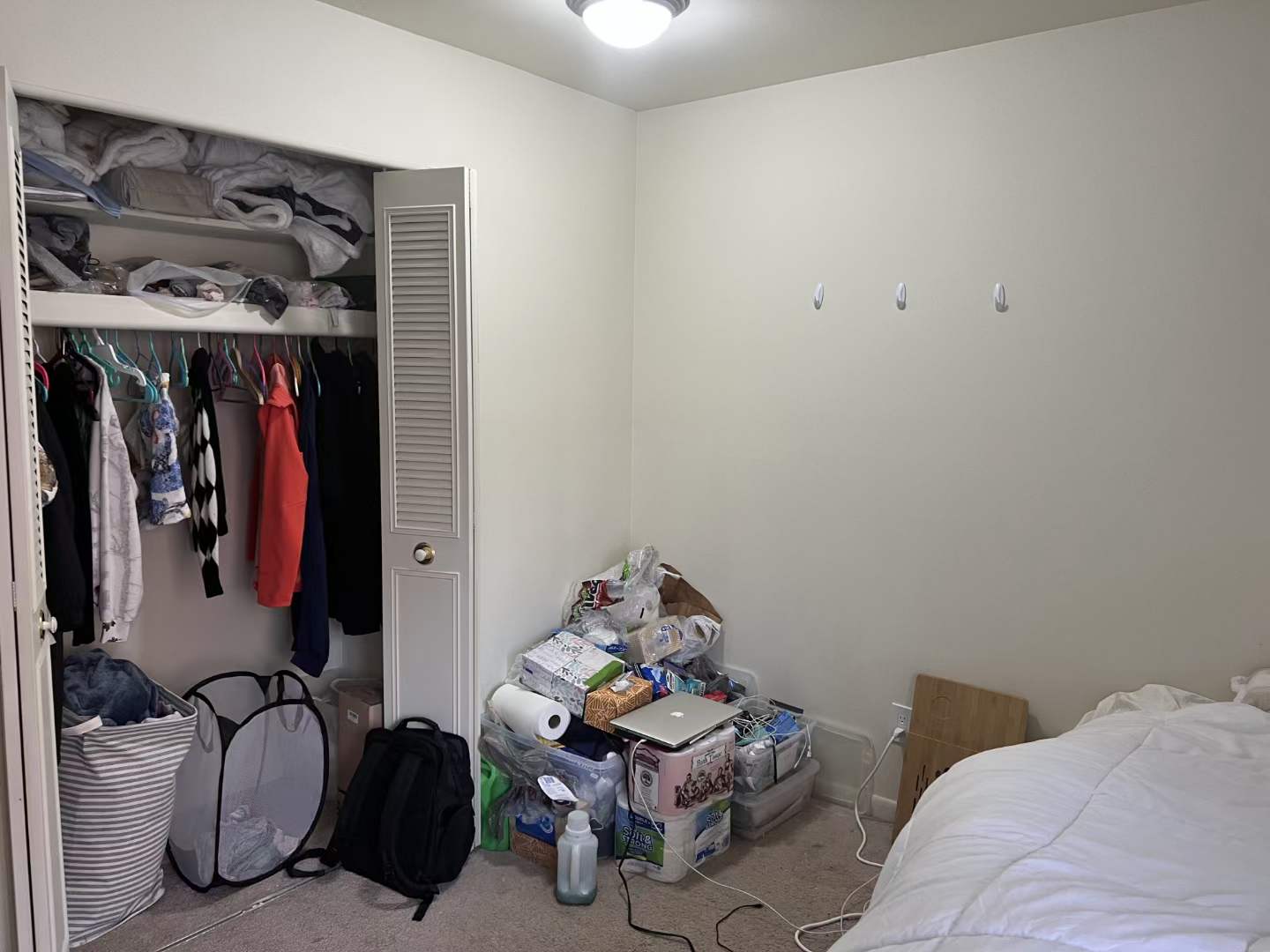 家具:目前室内有床架、床垫、桌子、床头柜、收纳箱等,可低价转让。